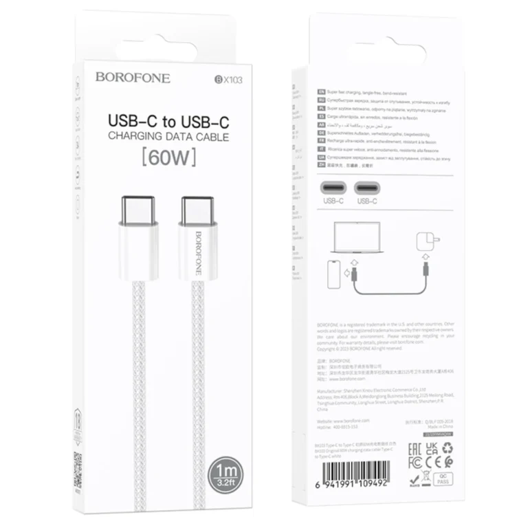 Το καλώδιο USB Type-C της Borofone είναι ιδανικό για τη σύνδεση σύγχρονων συσκευών USB-C με παραδοσιακές θύρες USB-A σε φορτιστές ή υπολογιστές. Με μήκος 1 μέτρο, σου προσφέρει ευελιξία στη χρήση του χωρίς περιορισμούς κίνησης.