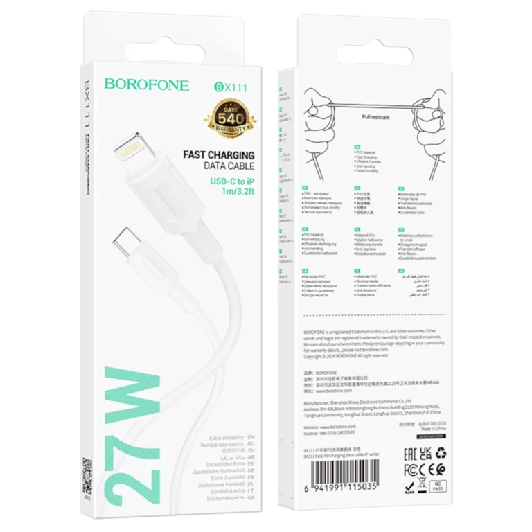 Το Borofone BX121 είναι ένα ελαφρύ και ανθεκτικό καλώδιο USB σε Lightning μήκους 1 μέτρου. Υποστηρίζει γρήγορη φόρτιση έως και 2,4A, καθιστώντας το ιδανική επιλογή για iPhone, iPad και άλλες συσκευές Apple Lightning.