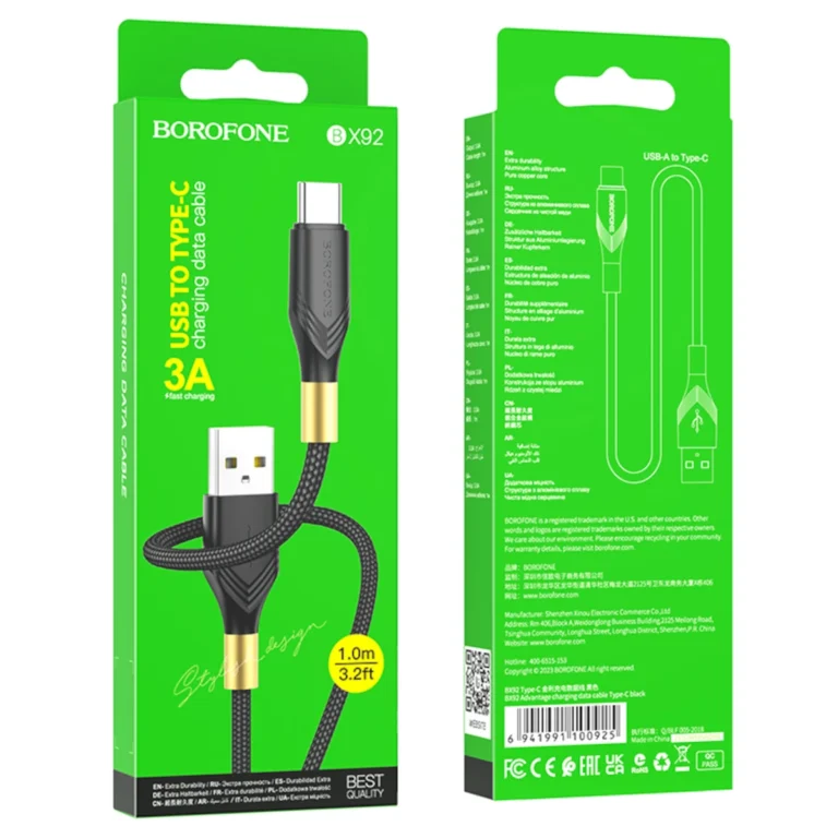 SKU: borofone-bx92-advantage-usb-c-3a-1m-black