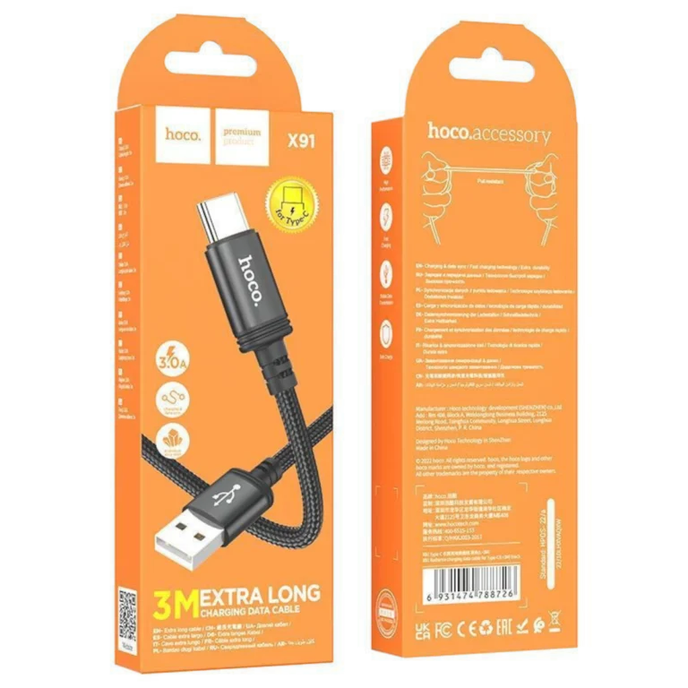 Hoco Καλώδιο USB to USB-C 3m 3A X91 Black