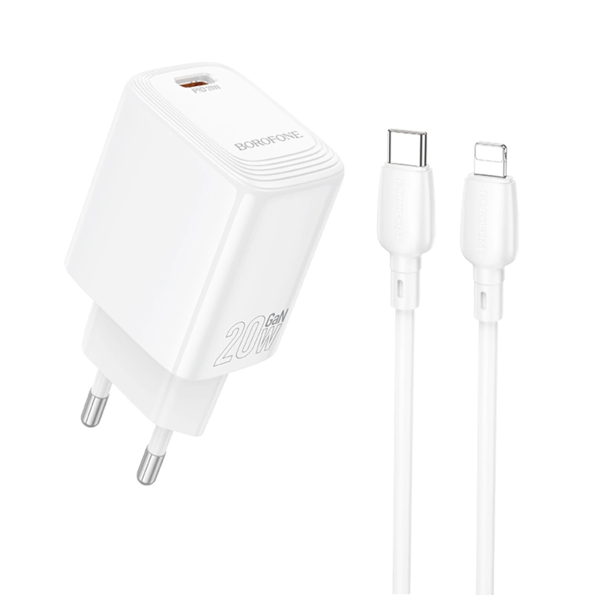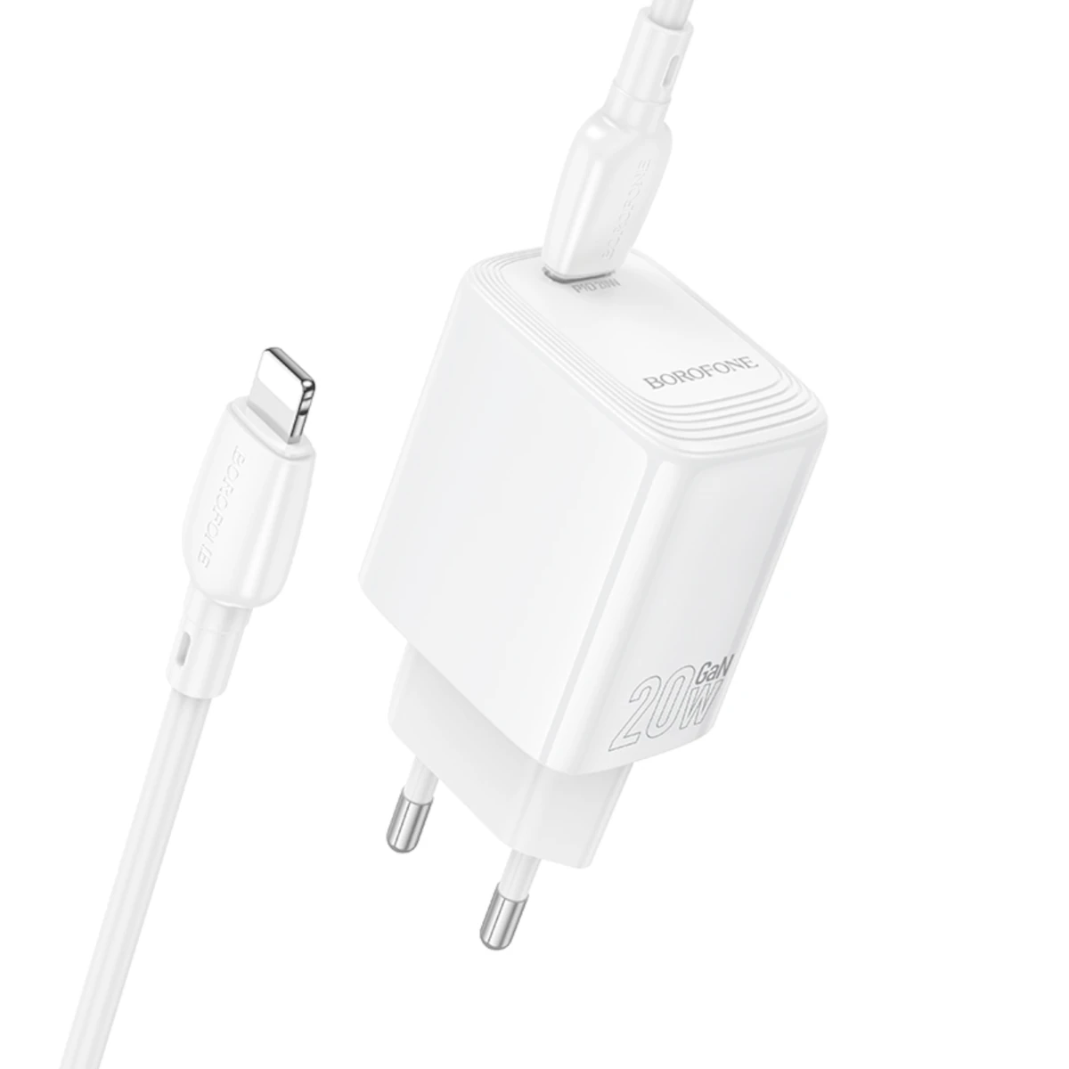 Borofone Φορτιστής USB-C & USB-A με Καλώδιο Type-C to Lightning 1m 20W BN7 White